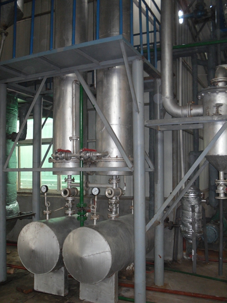 將反應好的粗甲酯經預熱器打入蒸餾系統,本蒸餾系統采用三次蒸餾工藝,大大提高了油品質量和得率,成品油的提取完全在高真空密閉系統中進行,本系統設備全部為不銹鋼304材質,所以在高溫下不會氧化,使產品的顏色得到最佳。